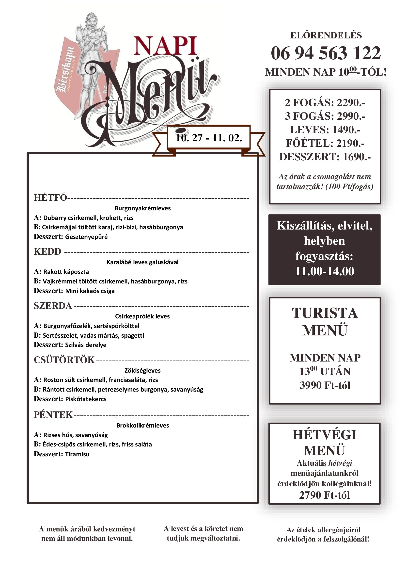 A MENÜVÁLTOZTATÁS JOGÁT FENNTARTJUK!